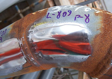Figura 1 - Trecho de uma linha que vai trabalhar em baixa temperatura após preparação metalográfica para a realização da réplica.