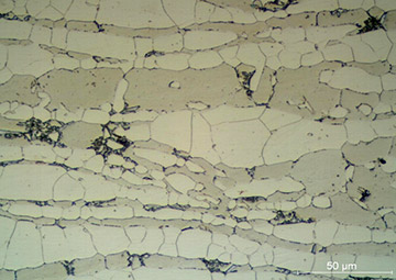Neste caso existia a dúvida sobre se o material da conexão utilizada em uma linha de baixa temperatura seria um aço ao carbono normalizado e a medida de tamanho de grão da estrutura ferrítica é fundamental para assegurar a resistência do aço carbono em baixa temperatura, sendo que neste caso o aço apresentou tamanho de grão ASTM 9,5 que corresponde a um grão bem fino e que resiste bem à baixa temperatura.